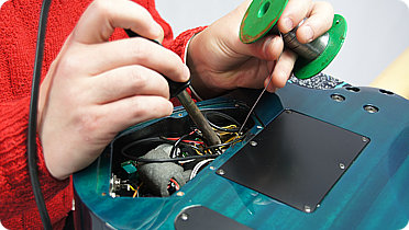Die erste Säule ist die Instrumentenreparatur. Sollten Sie also Probleme mit Ihrer Gitarre haben, kann ich Ihnen weiterhelfen. Mechanische oder elektrische Probleme kann ich instandsetzen und natürlich gibt´s vorher einen Kostenvoranschlag.